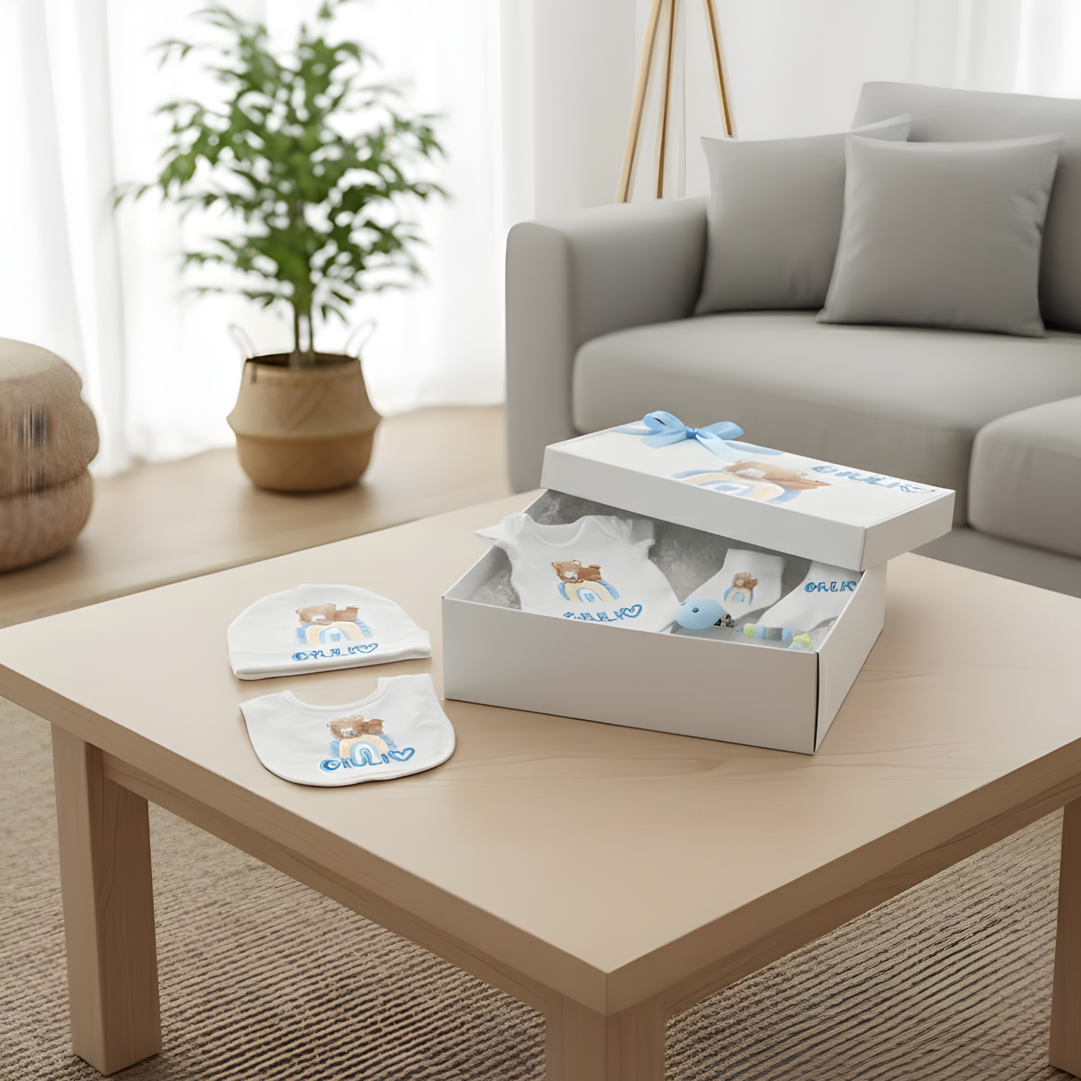 Ogni box può essere personalizzata con il nome del bambino e grafiche delicate, rendendola un ricordo che resta nel tempo.
